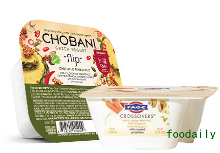 比如Chobani公司的Flip Chipotle Pineapple酸奶和Fage公司的Crossovers Carrot Ginger with Pistachios酸奶。
