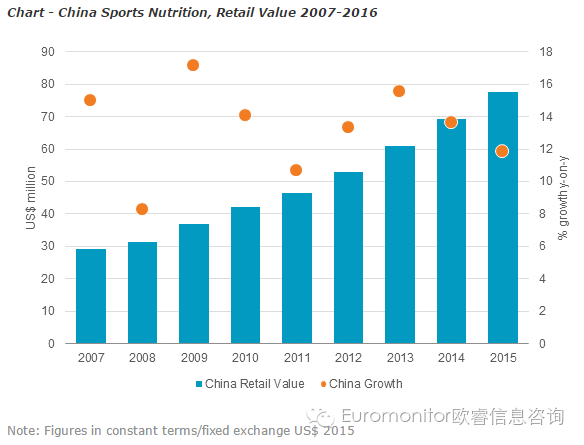 欧睿国际在回顾2003年至2015年运动营养品的零售额后发现,运动营养品的需求增减和夏季奥运会之间存在一定关系。做这个简单分析是想确认一点:奥运年的与运动健身有关的消费动机是否会影响运动营养品的购买模式。