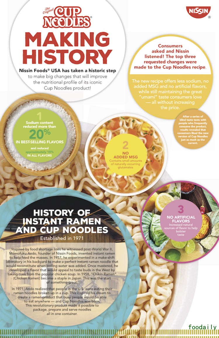 美国消费者近几年来越来越注重饮食健康,不少食品公司都为此改了产品配方,这周连日清公司都宣布在进入美国 45 年之后,他们第一次改变了在美国的杯面配方。