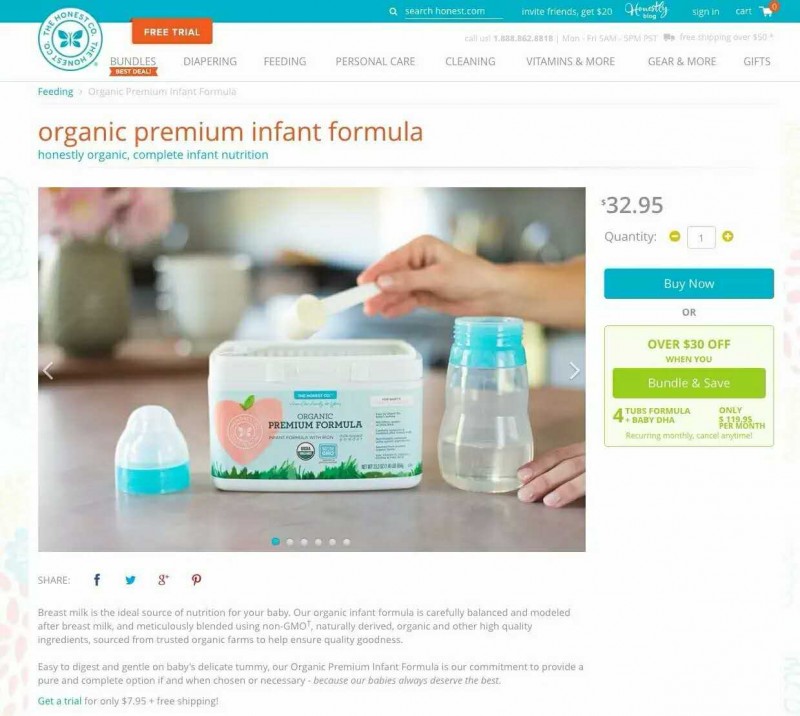 小编登录“美国诚实公司”的官网,发现除了上述提及的产品外,它也在出售尿不湿。另外,它有一个频道是专门出售维生素和婴幼儿保健食品和奶粉的。在其“有机奶粉”页面中,该公司声称采用非转基因、有机的原料,一盒的售价是32.95美元。在中国的一些电商平台,有海淘党在出售上述奶粉。