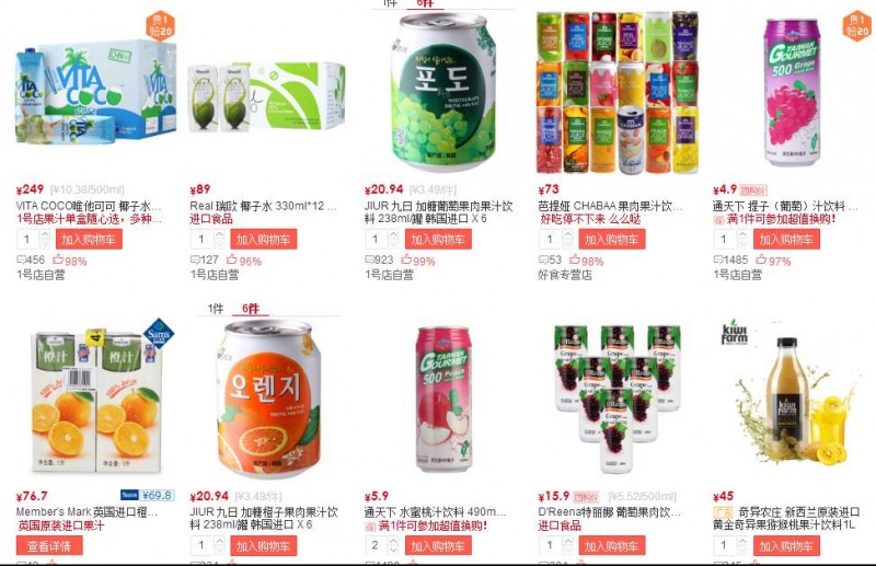 因此,电子商务已成为一个可以帮助果汁生产企业推广新产品的有效平台,并在一定程度上扮演着进口通道的角色。许多进口的100%纯果汁产品都首先在网上试水供货,通过在线销售的国际果汁品牌数不胜数。浏览知名网络超市一号店会发现,果汁市场的竞争已经有多么激烈,该网站共有来自超过18个国家和地区的大约144个品牌,其中来自东南亚的产品数量占47%。