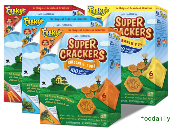 零食这一领域也流行着这一理念,包括Funley公司的All Natural Super Crackers系列(图7):Cheddar n’ Stuff(隐藏的花椰菜),Pizza n’ Stuff(隐藏的胡萝卜),Ranch n’ Stuff(隐藏的菠菜),和Cornbread n’ Stuff(隐藏的红薯)。