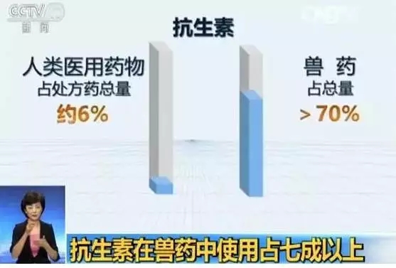 其实关于抗生素的使用问题也不是今天才有。据新华社报道,统计显示,抗生素在人类医用药物使用量占处方药总量的约6%,但在兽药中则占到70%以上。