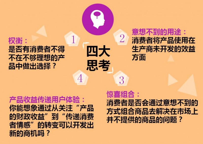 4、产品特性可以传递出更多用户体验:你能想象通过从关注“产品特性”到“传递消费者情感”的转变可以开发出新的商机吗?梦龙通过一种看上去并不那么具有革命性的创意给冰淇淋品类重新注入活力——巧克力香草冰淇淋条。但是通过这种简单的创意,梦龙给冰淇淋赋予了不同的感情色彩——魅力,颓废甚至是性感——梦龙通过一个“普通香草”的创意得到了大幅溢价的收益,并吸引了更多冰淇淋买家,这些消费者在第二年为品牌带来了2.25亿美元的销售额。