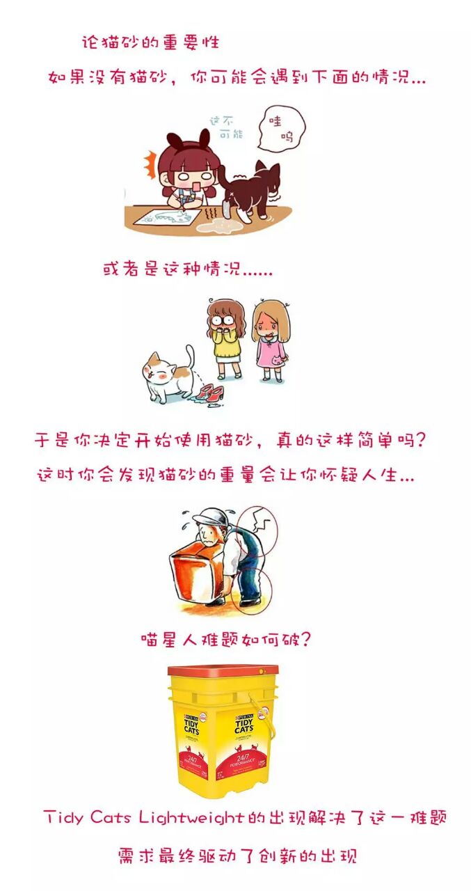 1、权衡:是否有消费者不得不在不够理想的产品中做出选择?喵星人已经在很长的一段时间里不得不在小数量,需要频繁进行采购的猫砂和高支出或者高重量包装难以人工搬动的猫砂中做出选择。Tidy Cats Lightweight通过开发一种和传统猫砂一样有效但却只有正常重量一般的产品解决了这个难题。