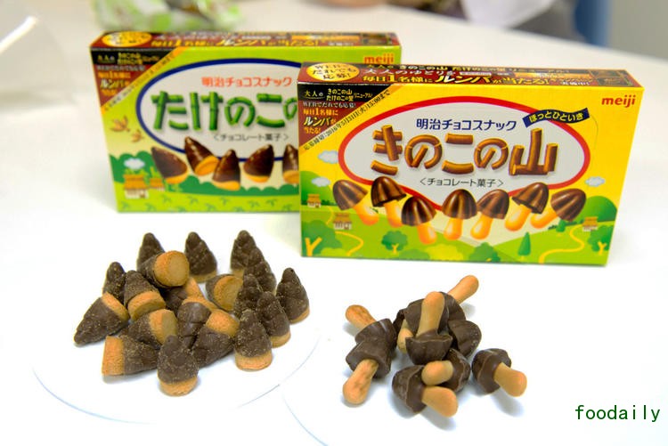 我们曾在“山之日”一文里介绍过明治旗下巧克力饼干“蘑菇山”与“竹笋村”的借势营销,而日本现在这股“大人的”零食、饮料正是从这两个品牌开始的。“蘑菇山”与“竹笋村”分别于 1975 年、1979 年推出销售,色彩鲜艳的包装很讨小朋友喜欢,对很多日本人来说饼干上裹着两层巧克力的“蘑菇山”与“竹笋村”就是他们童年的味道。