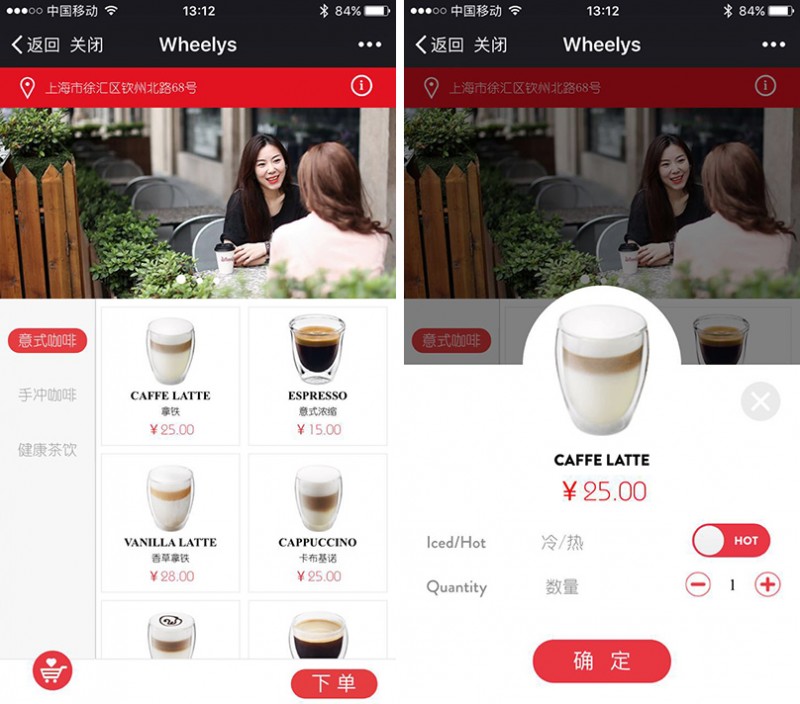 我们选择的是静安嘉里中心南广场 B1 层的这辆咖啡车。出发前先在微信上下单了一杯香草拿铁,订单生成了一句取货口令,到现场顺利地拿到了咖啡……嗯是的,不管取货口令有多羞耻……总之就这样结束了。这就是完整的一次购买 Wheelys 咖啡的过程,很简单。