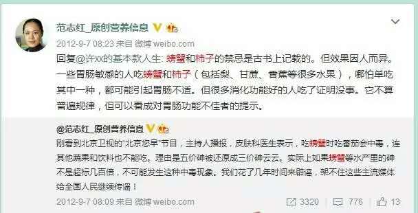 事实上,“螃蟹和柿子不能同食”谣言传播已久,媒体和多位专家已经进行过辟谣: