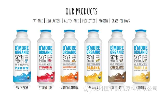 B’more Organic是一家基于SKYR冰岛式酸奶风格的有机食品公司,发展可持续农业。SKYR因其低糖0脂高蛋白的健康属性已从冰岛的传统食品成为风靡于欧美的酸奶产品。B’more Organic一直为消费者提供健康营养美味的创新可持续奶制品努力,于是在原有skyr的基础上进行开发,研制出skyr 饮用型酸奶&Smoothies产品。