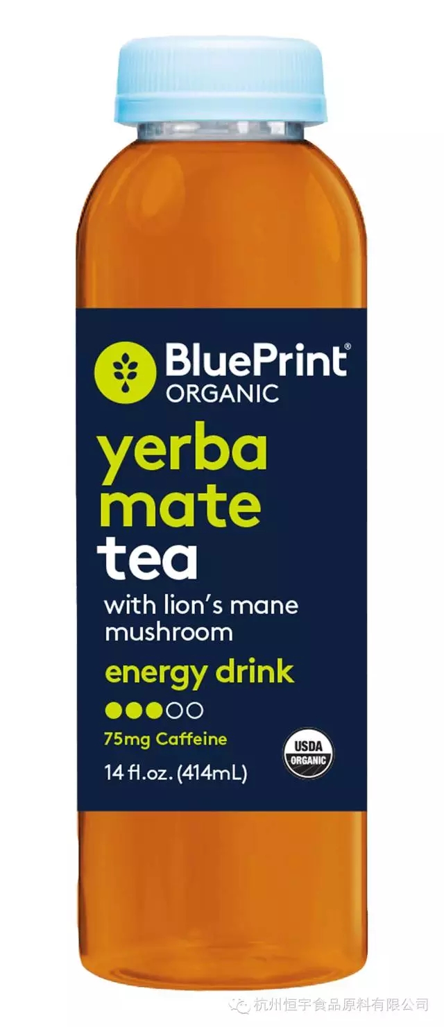 马黛茶能量饮料(75毫克咖啡因,45卡路里):马黛茶与咖啡、茶(红茶、绿茶等)并称为“世界三大茶”,早在印加帝国时代,就是南美洲人民在日常生活中常喝的茶。它含有丰富的维生素、矿物质、铁质、钙质、食物纤维等,所以有“液体沙拉”、“奇迹茶”之称。功效是活化肠的蠕动、解除便秘,也能补充饮食容易欠缺的营养素。这款产品在传统饮料马黛茶中加入猴头菇,完成一个柔和而平静的能量物质提升,饮用后使身心平衡。
