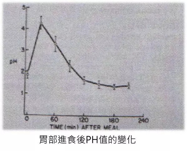 但若是非特殊耐酸硷的益生菌产品,该何时吃呢?从下图我们可以看出,胃部在进食后PH值的变化,饭前胃部PH值大约2左右,进食后胃酸受食物中和作用PH直上升,饭后1小时PH值逐渐下渐,尤其在饭后2小时PH值低于2。故从胃部PH值来看,非耐酸性益生菌建议搭配食物服用。