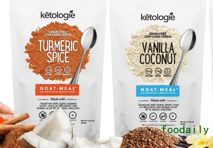Ketologie的Noat-meal系列早餐产品含有亚麻籽粉、坚果、乳清蛋白、中链甘油三酸酯油和益生菌,有巧克力坚果、香草椰子和姜黄香料等风味。每份含17-18g脂肪、15g蛋白质和少于5g的净碳水化合物(净碳水化合物的计算:从总碳水化合物中减去膳食纤维和糖醇,因为这些类型的碳水化合物被认为对血糖水平几乎没有影响)。该公司还正在研发一系列即饮的、生酮-友好型的汤和思慕雪(冰沙)。