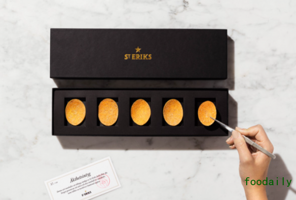 瑞典酿酒厂 St. Erik’s 最近推出一款薯片,一盒 5片装,价格高达 56美元(当前约合人民币380元,平均每片 76元),目的是与该品牌的优质啤酒搭配。