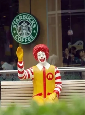 《星巴克:关于咖啡、商业和文化的传奇》一书的作者泰勒·克拉克就指出星巴克和麦当劳这两家巨头连锁机构正在日益仿效彼此——