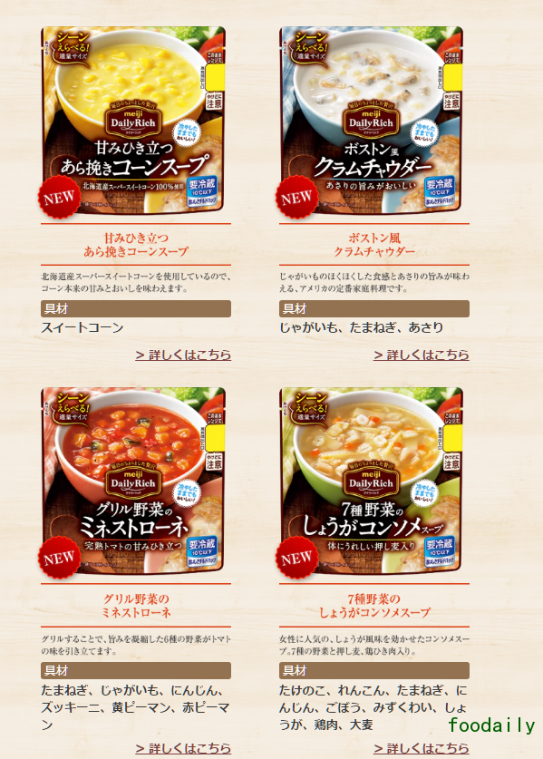 对于持续增长的蜂蜜市场,公司投入了原产地专一的“明治纯粹蜂蜜保加利亚产 250g”。为了持续开拓市场,还将发售小袋装配菜“DAILY RICH”系列4款产品,鱼类和贝类所制成的调理新系列汤品2款,发售共计6款产品。