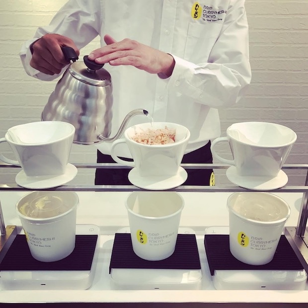 于是DRIP CURRYMESHI TOKYO的门店设计也根据白领们的喜好来打造,请了优衣库的创意指导佐藤可士和来做设计顾问,让整间门店看上去窗明几净,简单又不失格调,在人来人往的车站环境下很容易一眼就被看到。为了这间店看起来更专业,DRIP CURRYMESHI TOKYO还用类似于滴滤咖啡的形式来给咖喱加水冲泡,让这间普通的小事变得更有仪式感。
