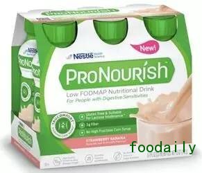 近日,雀巢推出了一款专为消化敏感人群设计的营养饮料—ProNourish,该饮料中加入了目前市场上比较流行的成分,低FODMAPs。据称该产品中含有15克的蛋白质和25种维生素及矿物质,同时不含麸质、高聚玉米糖浆、糖醇和人工色素。FODMAPs就是可发酵低聚糖、二糖、单糖和多元醇(FermentableOligosaccharides, Disaccharides, Monosaccharides And Polyols)的缩写。