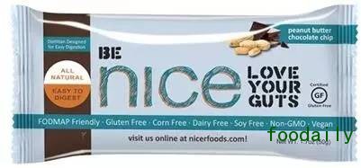 英敏特最新调查数据显示,和2015年的前几个月相比,2016年出现的低FODMAPs声称产品同比增长50%,由此可见该类声称产品的受欢迎程度。该声称产品在美国尤其受青睐,从2016年初至今,该类产品已经增长了71%,2015年的这一数据还仅为7%。比如美国Nicer Foods推出了低FODMAP蛋白质营养棒Be Nice(如下图所示),同时该素食产品不含大豆、乳制品和玉米,并且受到无麸质认证。
