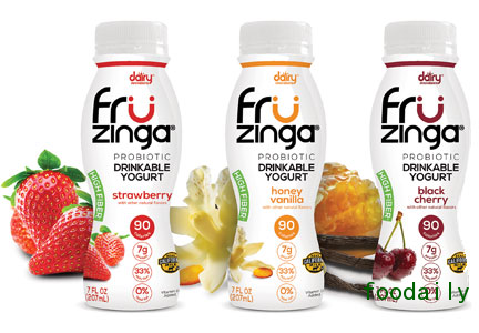 Dairy Innovations公司推出的Früzinga益生菌可饮用型酸奶的主要功效是促进消化系统健康。每瓶7盎司,包含90卡路里,7 g蛋白质和8 g纤维。