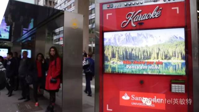 在圣保罗,桑坦德银行正在把公交站台转变为充电站、无线热点、诗歌角和K歌吧。