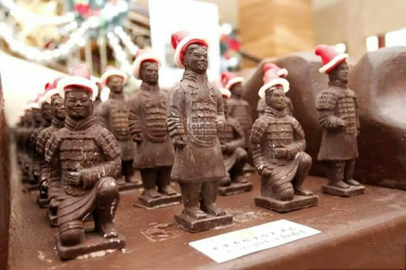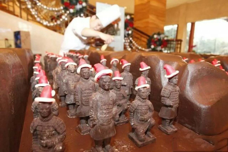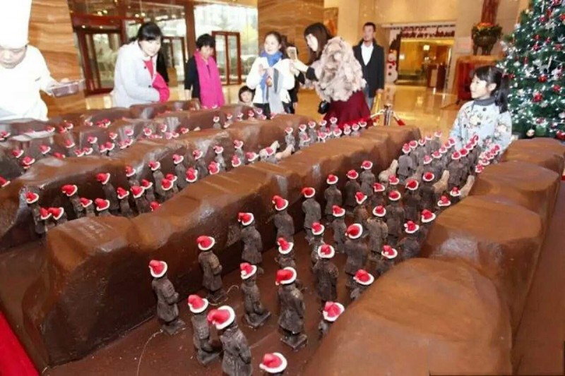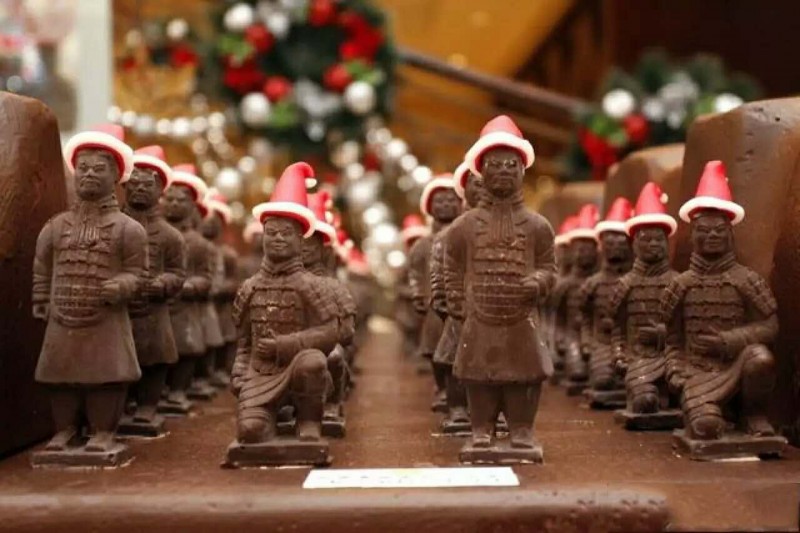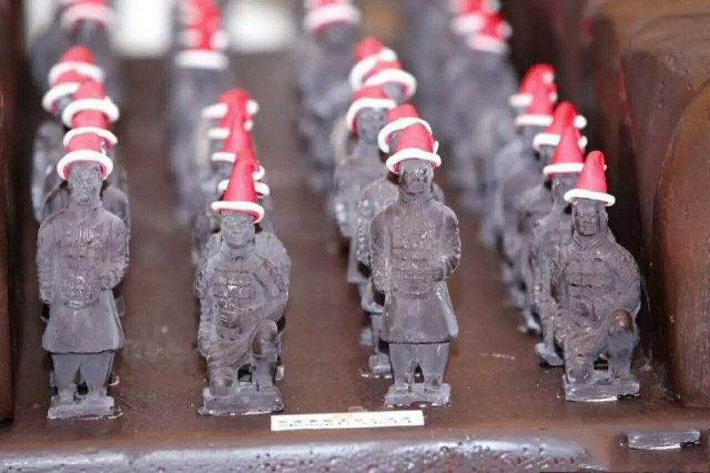 于是他们决定用巧克力创作秦俑一号坑的微缩景观,他们希望通过这些巧克力圣诞秦俑唤醒人们在过洋节的同时,更应该将我国几千年厚重的传统文化发扬光大,传承发展。