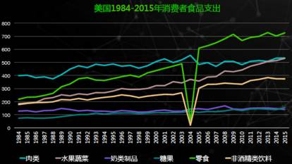 图1 美国1984-2015年消费者食品人均年支出变化,来源于美国劳工统计局官网