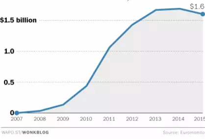 图6 Chobani2007年-2015年销售额增长,2012年上市五年缔造销售额10亿美金神话