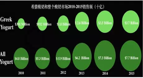图7 2010年-2015年,美国希腊酸奶及整个酸奶市场市场规模