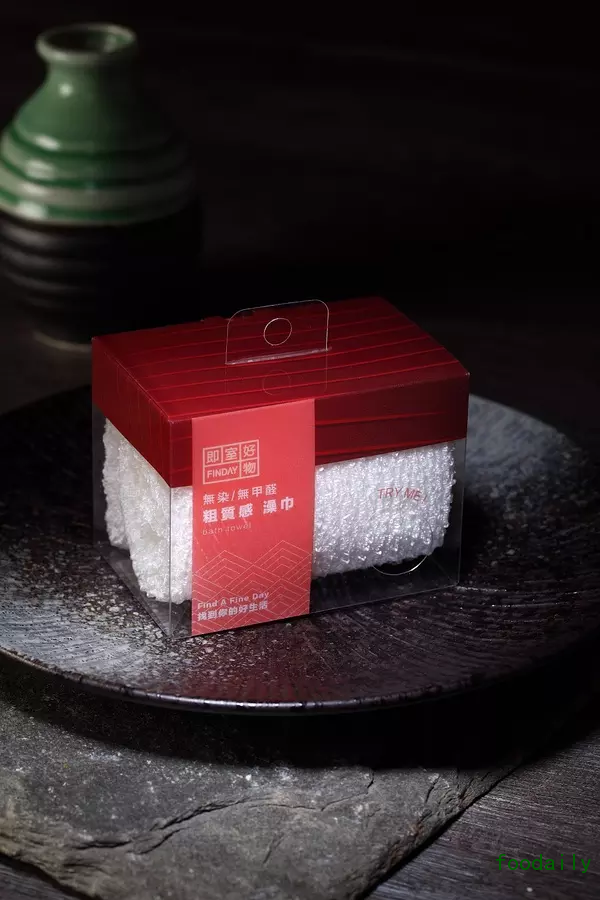 Goodeed Design 为台湾日用品牌 FINDAY 设计的浴巾包装很可能让你不知不觉就看饿了:塑料包装的上半部分印上了栩栩如生的食材,鱼和虾的肉质纹路都做得非常还原,其余部分则采用了透明的设计,还可以通过圆洞摸到里面卷起的浴巾。之所以选择寿司也是因为它简单纯粹的特质恰好与品牌所提倡的“简单又多变的生活”不谋而合,这种有趣的包装设计也启发着人们重新想象自己的日常生活。毕竟在看到这些以假乱真的大寿司之前,你可能很难想到白色浴巾和寿司竟然可以这么搭。