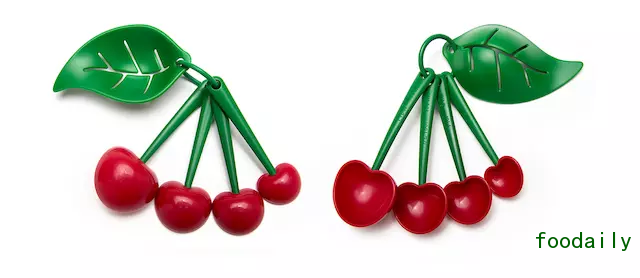 以色列设计师 Jenny Pokryvailo 曾经为以设计有趣小物闻名的工作室 OTOTO 设计过一款尼斯湖怪造型的勺子,这把量勺是她的最新作品。Mon Cherry 由四颗独立的“樱桃”和一片“绿叶”构成,“樱桃”可以用作量勺,“绿叶”则是一个分蛋器。用这么一款可爱的厨具组合来制作蛋糕,心情似乎也变得更加愉快。这是它的购买链接,售价为 16 美元。