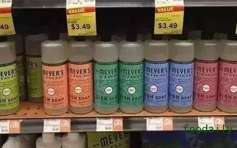 洗碗液价格标签右边的那个圆形,就是对这款家用洗涤用品的评级,评级为橙色