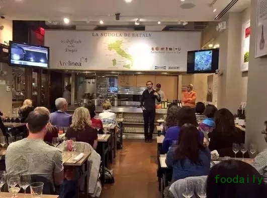 Eataly 综合了超市和餐厅两种属性,在门店的布置上非常讲究。超市的旁边就是厨房,确保了食材的新鲜程度,又能向购买商品的顾客演示如何回家料理,一举两得。