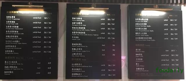 足足32款产品,大部分是“独家特色”的茶饮,另外还有5款咖啡。价格普遍在区间在30—39这个区间。