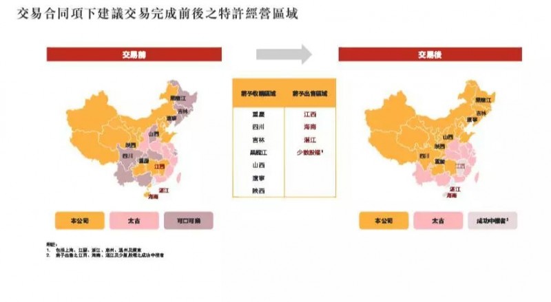最后,总结一下,太古和中粮的势力版图在交易后将会长这样,颇有南北分治的感觉(图中本公司指中国食品):