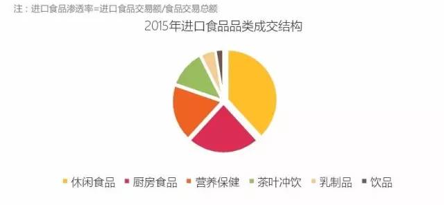 进口食品主要品类构成:休闲食品、乳制品、饮品、营养保健、厨房食品和茶叶冲饮等六大类。