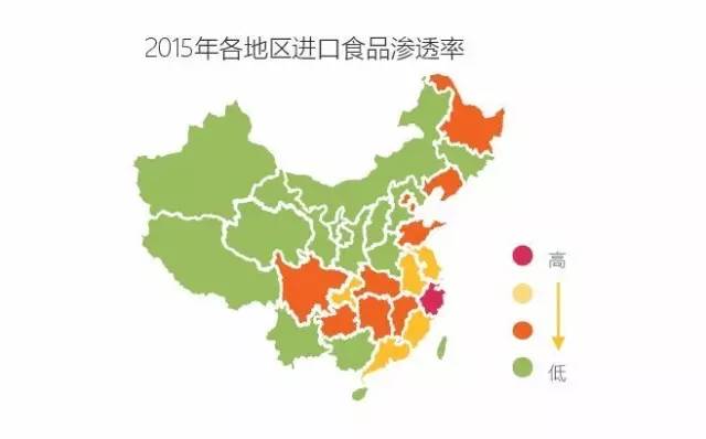 进口食品消费主要集中在东部沿海地区,其中江苏、浙江、广东、北京和上海最高。而笔单价中西部地区更高,中西部地区虽然在贡献率上不如沿海地区,但消费更加阔绰。(编者注:真的不是因为西部地区不包邮邮费占主要部分的原因?)