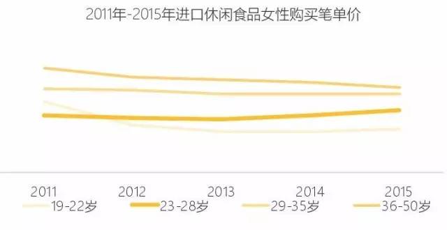 从笔单价看,泛90后女性单笔购买金额并没有大幅增长,购买次数却迅速增加,2014年成为线上进口休闲食品购买频次最高的客群。两点重要因素:1.泛90后女性线上购买休闲食品习惯逐渐养成,她们更习惯于网上购物;2.泛90后善于分享购物经验,而休闲食品存在大量尝试性购买,顾客的正面评价易成为他人的购物冲动。