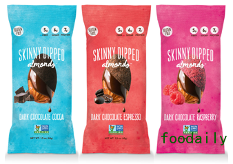 SkinnyDipped Almonds公司:将巧克力包裹的扁桃仁“转变”成为一款“Better for you”(对你更有益)的零食,低糖且不含任何化学合成物质。根据公司网站上的介绍,该产品将扁桃仁略微腌制,然后涂上一层薄薄的黑巧克力,随后喷洒可可粉、咖啡粉,或者是覆盆子粉,给消费者带来“疯狂上瘾”的零食体验。