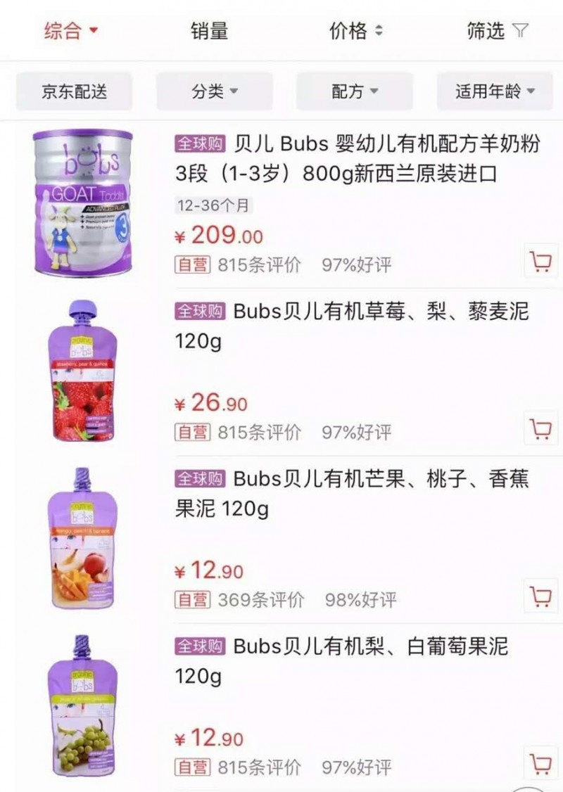 今天,小编在京东上搜索该品牌,发现已经有部分产品在售,包括了洋奶粉及婴幼儿辅食。