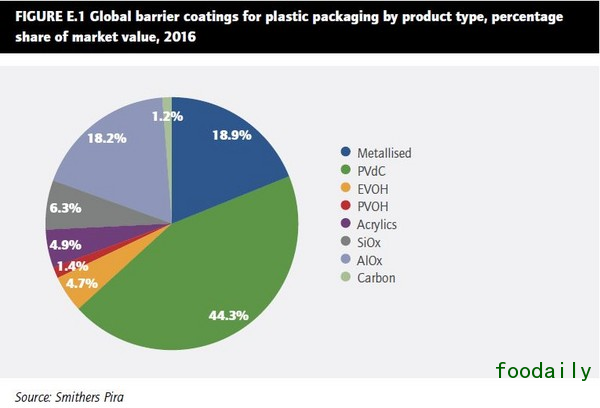 谈到最受欢迎的阻隔涂层类别,该报告称:“食品是迄今为止塑料包装中功能性添加剂和阻隔涂料最大的应用市场,占2016年市场价值60%以上的预期份额。