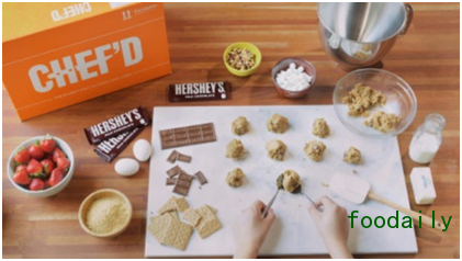 Chef'd网站显示,通过与好时的合作,公司提供的甜点产品包括来自Hershey’s Kitchens的配方,如巧克力屑饼干,无需烘焙的太妃软糖棒和白色柠檬屑棒。