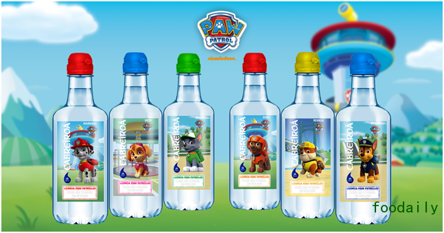 Cabreiroa 330mL的PET瓶上采用了Paw Patrol的形象,它们有着不同颜色的运动盖子和背景。主要消费目标是3~10岁的儿童。