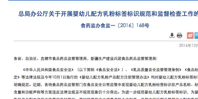 12月1日,小编才在速读食讯里引述报道称食药总局将开展奶粉标签标识清理整顿,没想到它会以雷霆般的速度在今天落地。