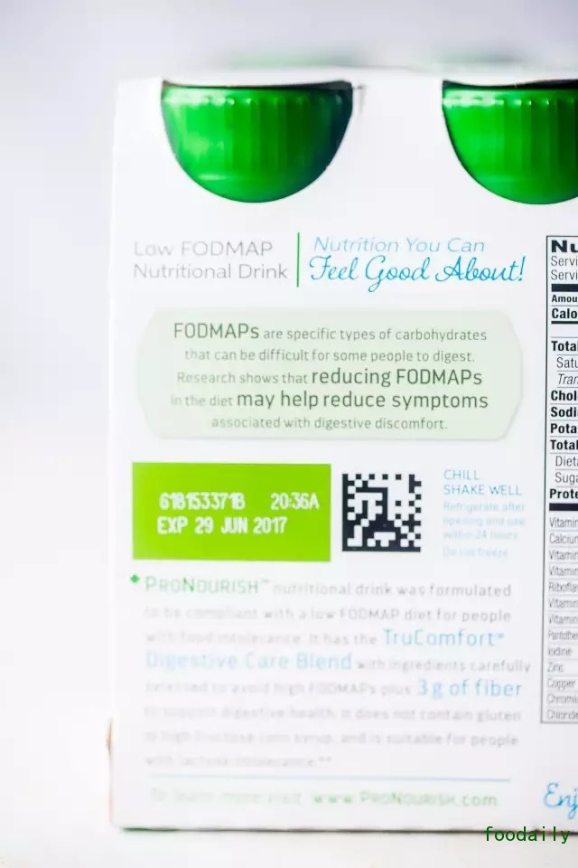 ProNourish采用了8盎司瓶装,是一款营养饮品,使人们可以随时随地(不论是在家还是在路上)遵循低FODMAPs饮食,目前有两种口味:法国香草味和草莓香蕉味。