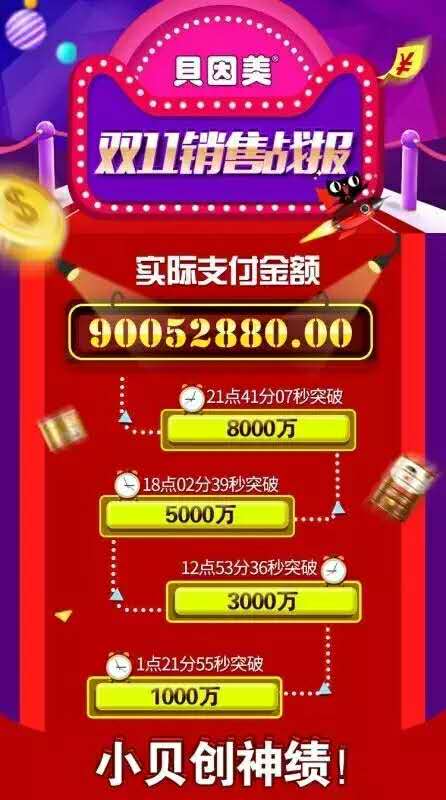 双11贝因美产生9000多万销售额,拿下行业冠军