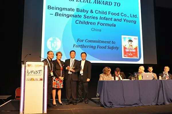 2016年8月21日-25日,被称为食品界“奥林匹克”盛会的第18届世界食品科学技术大会在爱尔兰都柏林召开。贝因美婴童食品股份有限公司凭申报的贝因美系列婴幼儿配方奶粉,在全世界各国众多参与的食品公司中脱颖而出,荣获颁奖大会压轴大奖——“致力于促进食品安全”特别奖。