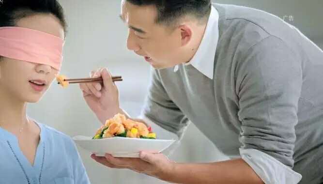 在广告片中,明星夫妻演绎厨房里的亲密互动。孙莉蒙眼尝鲜,饶有兴致地猜测黄磊做了哪道家常菜。两人的互动默契十足,画面温馨浪漫。广告片也传递出夫妻二人的婚姻保鲜之道,即在平淡生活中制造新鲜感和小惊喜。味事达成功将“只榨取一次,就是鲜”的功能诉求首次升华到婚姻保鲜的高度。
