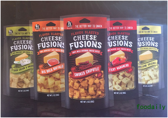 被形容为“更好的吃零食方法”的Cheess Fusions计划在2017年冲击零售店的货架。该产品由Norseland公司推出,是一款2盎司单份包装的风味奶酪块,包括四个品种:水牛肉风味奶酪、哈瓦那风味奶酪、烟熏干红辣椒切达、酸奶油奶酪、洋葱奶酪。而对于那些胆子比较小的消费者,还有原味切达。