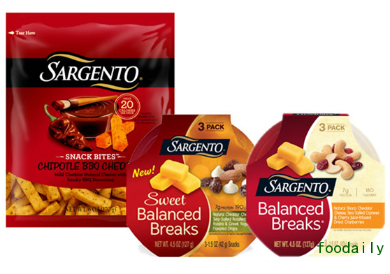 Sargento Foods公司旗下“Balanced Breaks”系列产品加入了甜口味,将有机奶酪片和水果干、黑巧克力组合在一起。四种甜味品种中含有5-7克蛋白质,热量低于200卡路里。这款有机系列产品包含奶酪块、水果干、腌坚果。今年早期时候,公司推出了6盎司的多份包装的“Sargento Snack Bites”。种类包括干辣椒烧烤切达、可口大蒜,以及草药风味。