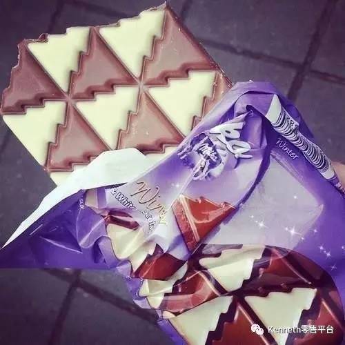 2016年,针对排装的巧克力,Milka推出了这款圣诞树形状的排块,炒鸡萌!